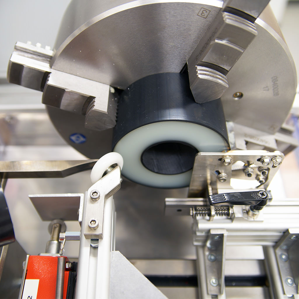 通过使用特殊的卡盘钳口,它甚至可以切割外径达200毫米(7.87英寸)的更大样品